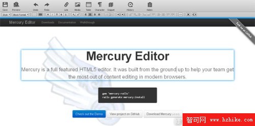Mercury Editor是一個全功能的HTML5編輯器,建立在Html5內容編輯功能的頂部,它本身就支持所有Html5元素的語法和JavaScript API。它支持完整的Html,簡單,片段和圖像區域。它支持預覽編輯內容和插入鏈接,圖像,視頻或表。文件上傳可以拖放完成。