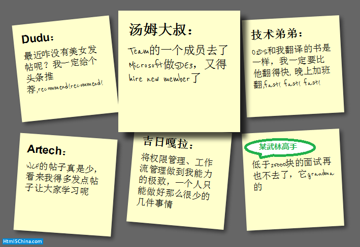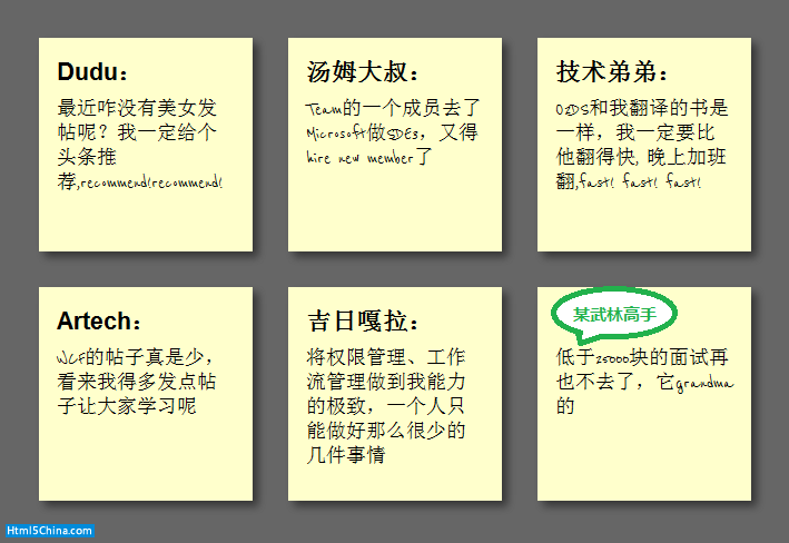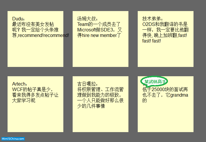 至此,我們利用了Html5和CSS3的基本特性做成了一個還不錯的便簽貼效果,Html5/CSS3確實很強大,如果在加一些高級特性,比如和JavaScript結合起來,能實現更加牛逼的效果,從當耐特磚家給大家的Html5實驗室系列文章,就可以看出來了。