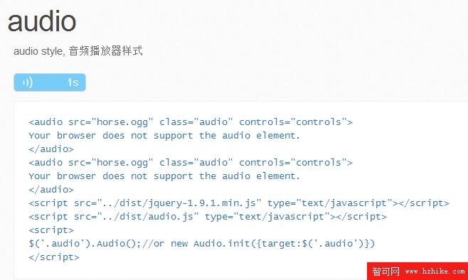 由於Html5的流行,現在移動端大多數的需求都可以使用audio來播放音頻,但您可能只是需要很簡單的播放/停止效果,但不同的浏覽器上的audio樣式卻不盡人意,所以我簡單的把它進行了封裝,效果如下: