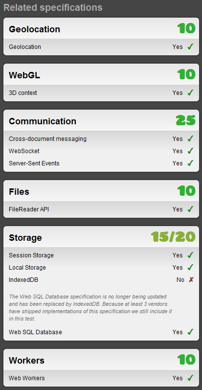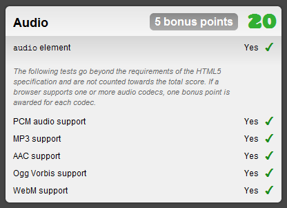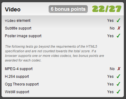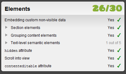 我們以得分最高的Chrome canary版本為例,看看Html5元素的支持情況。