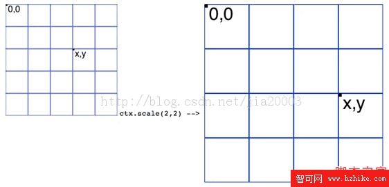 Scale(a, b)意思是將對象沿著XY軸分別放縮至a*x, b*y大小。效果如圖示: