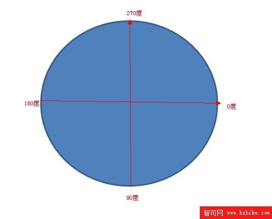 其它都好說,主要這個開始角度和結束角度我們來研究下,因為開始我沒搞懂,但後來我發現他其實很簡單了。。。就是開始的角度和結束的角度嘛,和我們高中學的知識一樣的,只不過單位換算Math.PI/180為一度。。。。