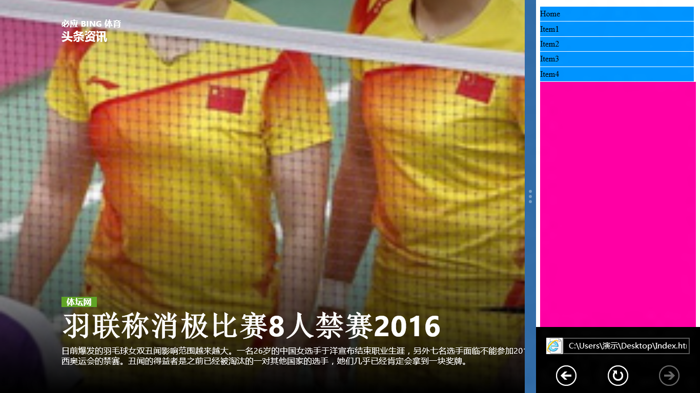 如何修改呢? 在傳統的這樣頁面中我們只需要根據Windows 8 的貼靠特性編寫一份CSS 讓我們頁面以320像素的寬度進行布局和顯示即可