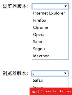 以前需要用JS寫一個自動完成組件(Suggest),很費勁。Html5時代則不用了,直接使用datalist標簽,直接減少了工作量。如下
