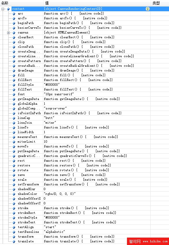 包含了fillStyle、stokeStyle、lineCap、font等畫筆樣式類的屬性,fillRect、strokeRect、beginPath、moveTo、lineTo、closePath、stroke、fill、drawImage等畫圖動作的方法,還有一些其他的一些transfrom、save等方法。