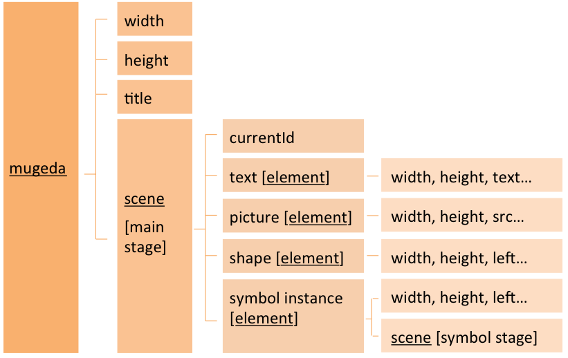 Mugeda API包含三個主要類:內容、場景、和元素。