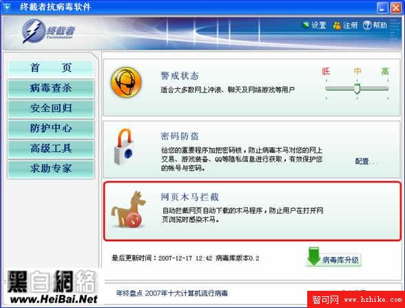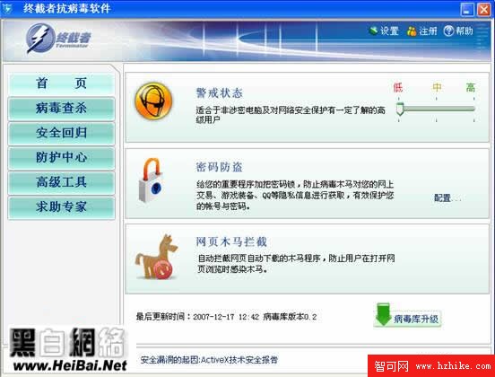 及時的病毒庫更新是每款安全防護軟件所必須的,終截者也不例外,實時的安全更新能更好的保護你的計算機(此功能只對付費用戶開發)