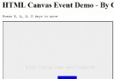 演示Html5 Canvas鼠標事件,獲取Canvas對象上的鼠標坐標,演示鍵盤事件通過鍵盤控制Canvas上對象移動。 Canvas對象支持所有的JavaS