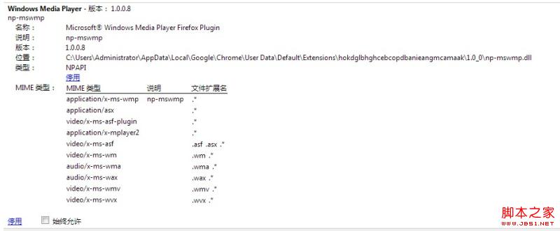 1.在chrome浏覽器中輸入chrome://plugins/ ,看看裡面的wmp插件是什麼版本