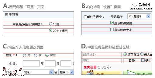 最近的項目涉及到很多表單的制作,特別是復選框(checkbox)和單選框(radio)。但是在前端開發過程中發現,單(復)選框和它們後面的提示文字在不進行任何設置的情況下,是無法對齊的,而且在Firefox和IE中相差甚大。即使設置了vertical-align:middle,也依然不能完美對齊。如下圖所示: