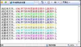 淺綠色文字:<font color="#00dd00">HTML學習的本質就是該是什麼就用什麼</font><br />