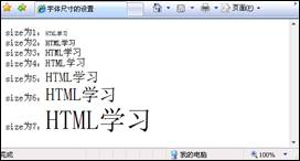 size為1:<font size="1">HTML學習</font><br />