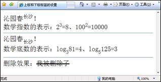 為了滿足不同領域的需要,HTML還有其他修飾文字的標簽。比較常用的有上標格式標簽和下標格式標簽。某些場合甚至要用到刪除效果,即可用HTML的中劃線標簽。