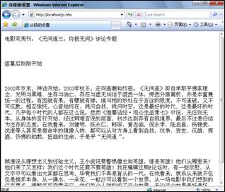 圖4.1看上去已經沒有問題了,當文字到達浏覽器的邊界後將自動換行。但是當調整浏覽器的寬度時,文字換行的位置也相應發生變化,格式顯得相當混亂。為了規范格式,讀者應該在編寫代碼時在需要換行的位置用單標簽<br />標簽強制換行。反之,不需要換行的部分用雙標簽<nobr></nobr>包含。修改p.htm代碼如代碼4.3所示。