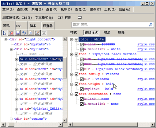 IE8“開發人員工具”使用詳解上(各級菜單詳解)