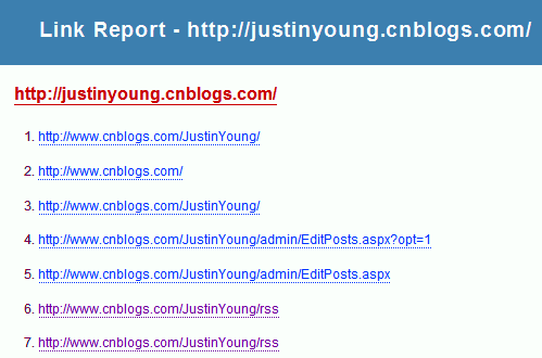 使用鏈接報告功能,開發人員工具會幫你生成一份此頁面的鏈接報表。包含鏈接數量、鏈接地址、是否新窗口打開等信息。不過,具體這玩意有什麼用。我也不知道。