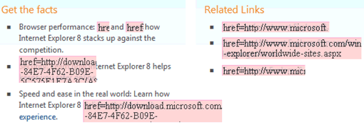 和上面一樣。它會把頁面中的所有超鏈接都會一坨坨的紅色框出來,並且顯示其鏈接地址。