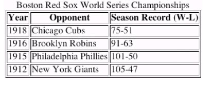 <p align="center">Boston Red Sox World Series Championships</p>