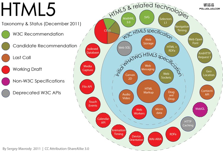 以下是一組關於HTML5的最新信息圖表。它以一種知識性和趣味性的方式來告訴我們關於HTML5的當前狀態,解釋演變,主要特性和功能。
