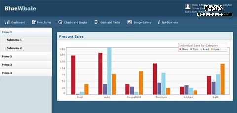 BlueWhale 基於960 Grid 框架和jQuery + jQuery UI構建。