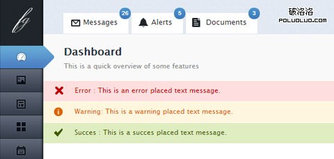 一個單一頁面模板,在頭部和側邊欄都導航。還提醒消息的樣式表。