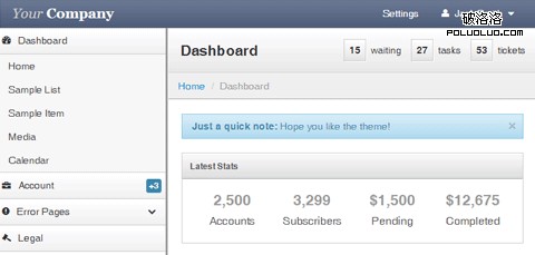 一個Twitter Bootstrap開發的,響應式管理模板。擁有許多你所需要的東西如:導航,表格, 表單, 登錄/注冊, 錯誤頁面等。