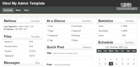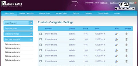 INADMIN是一個基於jQuery開發的管理模板,擁有頭+頂部導航。為tables, forms, messages等提供樣式表。