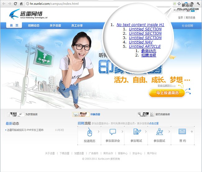 這兩個都是我早期的作品了。當時還覺得自己的結構寫的不錯,特別是第二個,還用上了HTML5標簽,以為自己就踏進這個新世界了。看過HTML大綱算法之後,檢測了一下這些頁面,真的是慘不忍睹。第一個各種混亂標題不說,“主創陣容”居然從屬於“用戶評論”?第二個也不好發言了,那麼多未命名的是什麼東西?不過總是要踩在傷痛的歷史上才能往前進。