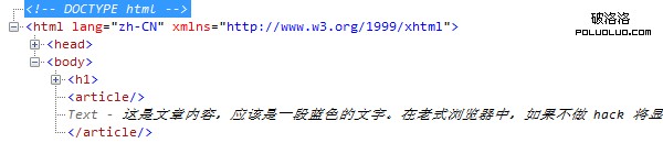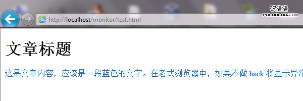 這是文章內容,應該是一段藍色的文字。在老式浏覽器中,如果不做 hack 將顯示異常。
