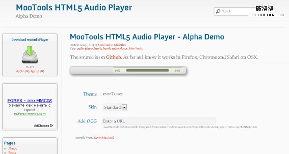 MooTools驅動的HTML5 Audio Player。包含多個模板和皮膚。