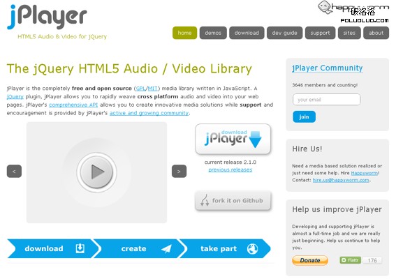 jPlayer是一個用於控制和播放mp3文件的jQuery插件。它在後台使用Flash來播放mp3文件,前台播放器外觀完全可以使用XHML/CSS自定義。