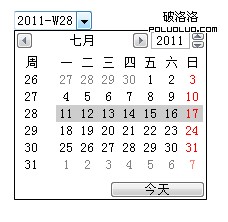 week是專門用來輸入周(星期)的文本框,W後面所跟的數字表示此周是當年的第幾個星期。在日歷中只能選擇一周,同樣不能選擇某一天。