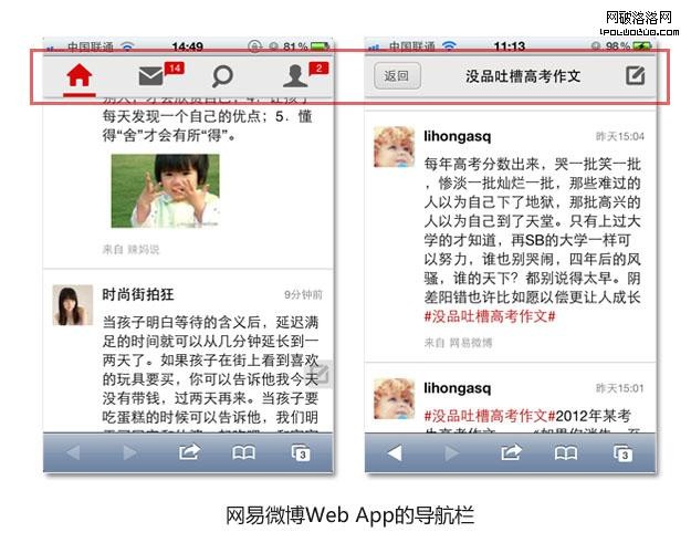 網易微博Web App(本文內均指手機端)有別於Web端產品,與本地客戶端也有所差異。