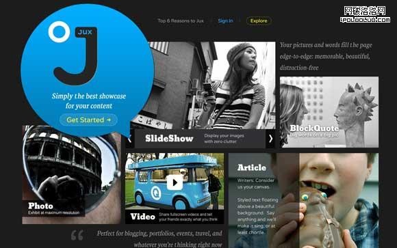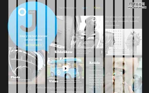 頁面的垂直排列同樣要予以重視。各元素之間應具有相同的寬帶,同時元素之間的空格距離亦然要保持一致。網站Jux在圖片與網格布局的搭配上就做得很好,各個圖片間不僅邊距相同,並且不同形狀的圖片排列起來也堪稱完美。