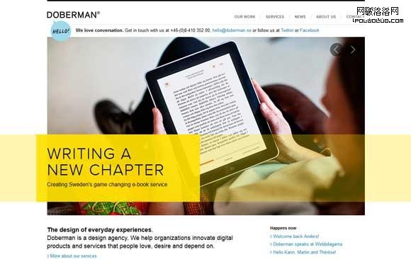 通過顏色達到反差效果是最簡單的方法之一。選定背景和文本顏色之後,可使用一些完全不同的元素來增強網站某個位置的吸引力。在這一點上,可參見Doberman使用的極簡主義。黑白兩色是網站最基本的配色方案,勝在簡潔可靠,不過添加一些黃色塊元素更能達到強調的效果。而亮色與嚴肅的主題所形成的鮮明對就很搶眼。此外,網站設計者在網站其它關鍵區域可添加藍色形成其它的反差效果。