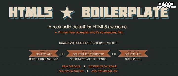 HTML 5 Boilerplate 是一個HTML / CSS / js模板,是實現跨浏覽器正常化、性能優化,穩定的可選功能如跨域Ajax和Flash的最佳實踐。