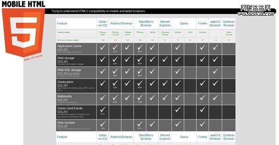 這個很贊,整理了智能手機和平板中默認浏覽器對HTML5和CSS3新技術的支持情況。多謝 @cnjoel 在twitter的分享。