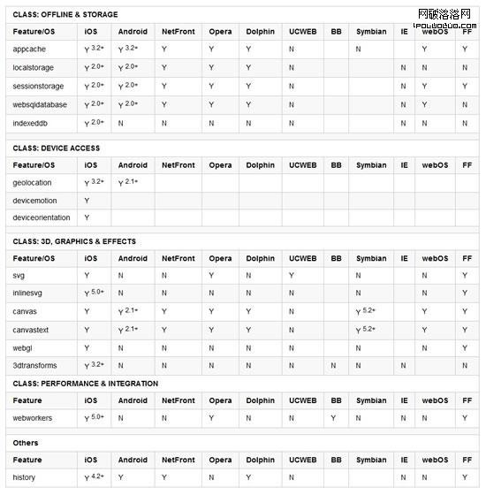 知名的HTML5框架BOILERPLATE(其實是一套完整的前端實現和優化方案)的作者在github上構建了一個關於HTML5在移動設備上的支持情況的頁面,相信對大家會比較有用: