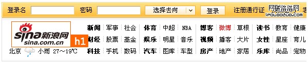 現在很多網站(包括淘寶、新浪、搜狐等知名網站),都喜歡把h1用在LOGO上, 如圖: