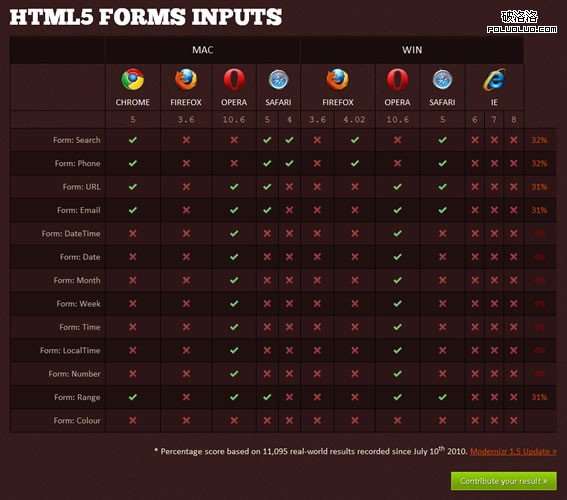 其實modernizr就是為HTML5而生的——它是一個檢測浏覽器對HTML5和CSS3特性支持的JS庫,著名的HTML5/CSS3浏覽器兼容性網站FindmeByIP就是基於該框架實現的。