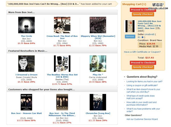 以上兩個網站案例都增加了一個Mini購物車的頁面,這個Mini購物車頁面都是左右二欄式結構。左側頁面內容多產品多,占用的地方也大,右側的 Mini購物車只占用了一點合理的位置。回頭對比看Zappos的購物車頁面,我們就會明白了一個道理,像Zappos一樣的通常購物車頁面,產品的交叉 銷售推薦都在頁面的下部,顧客在這個頁面,如果不下拉鼠標很難看到這部分推薦內容,特別是在購物車內產品有多個的時候,更是關注不到這些推薦產品了。這樣 的購物車頁面功能設計是不是更加合理呢? (到目前為止還只有很少幾個國內外網站使用這樣的購物車功能頁面,趕快行動吧。)