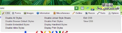 憑借Web Developer擴展包,您可以訪問其他的開發者工具,例如驗證選項,頁面尺寸調整和CSS要素浏覽器:所有功能都可以從工具欄中一個額外的按鈕進入。