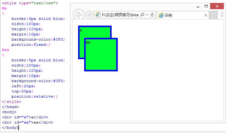 在上面relative的示例中,我們看到了aa遮住了a,這是因為後寫代碼的顯示級別越靠前,那麼在不改變代碼順序的情況下如何讓a蓋住aa。如下: