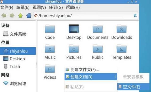進入到 /home/shiyanlou/ 目錄下,新建空白文檔: