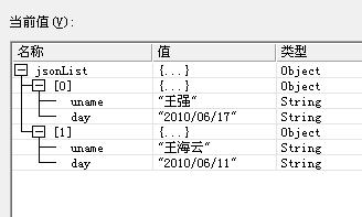 這時候假設我們不知道"uname"和"day"這兩個key值,我們開始對jsonList執行循環操作。