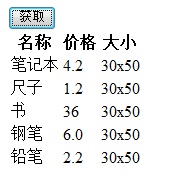 點擊獲取按鈕後,將請求頁面,獲取json數據,填充到表格