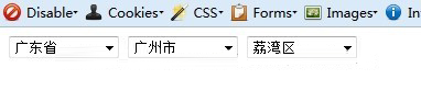 1 2 3 4 5 6 7 8 9 10 11 12 13 14 15 16 17 18 19 20 21 22 23 24 25 26 27 28 29 30 31 32 33 34 35 36 37 38 39 40 41 42 43 44 45 46 47 48 49 50 51 52 53 54 55 56 57 58 59 60 61 62 63 64 65 66 67 68 69 70 71 72 73 74 75 76 77 78 79 <!DOCTYPE HTML PUBLIC "-//W3C//DTD HTML 4.01 Transitional//EN"> <html> <head> <base href="<%=basePath%>"> <title>My JSP 'city.jsp' starting page</title> <meta http-equiv="pragma" content="no-cache"> <meta http-equiv="cache-control" content="no-cache"> <meta http-equiv="expires" content="0"> <meta http-equiv="keywords" content="keyword1,keyword2,keyword3"> <meta http-equiv="description" content="This is my page"> <!-- <link rel="stylesheet" type="text/css" href="styles.css"> --> <script type="text/javascript" src="js/jquery-1.7.2.min.js"></script> <script type="text/javascript"> $(document).ready(function(){ //省 $.ajax({url:"xml/City.xml", success:function(xml){ $(xml).find("province").each(function(){ var t = $(this).attr("name");//this-> $("#DropProvince").append("<option>"+t+"</option>"); }); } }); //市 $("#DropProvince").change(function(){ $("#sCity>option").remove(); $("#sArea>option").remove(); var pname = $("#DropProvince").val(); $.ajax({url:"xml/City.xml", success:function(xml){ ///查找<province>下的所有第一級子元素(即城市) $(xml).find("province[name='"+pname+"']>city").each(function(){ var city = $(this).attr("name");//this-> $("#sCity").append("<option>"+city+"</option>"); }); ///查找<city>下的所有第一級子元素(即區域) var cname = $("#sCity").val(); $(xml).find("city[name='"+cname+"']>area").each(function(){ var area = $(this).attr("name");//this-> $("#sArea").append("<option>"+area+"</option>"); }); } }); }); //區 $("#sCity").change(function(){ $("#sArea>option").remove(); var cname = $("#sCity").val(); $.ajax({url:"xml/City.xml", success:function(xml){ ///查找<city>下的所有第一級子元素(即區域) $(xml).find("city[name='"+cname+"']>area").each(function(){ var area = $(this).attr("name");//this-> $("#sArea").append("<option>"+area+"</option>"); }); } }); }); }); </script> </head> <body> <form id="form1"> <div> <select id="DropProvince" style="width:100px;"> <option>請選擇</option> </select> <select id="sCity" style="width:100px;"> <option>請選擇相應市</option> </select> <select id="sArea" style="width:100px;"> <option>請選擇相應區</option> </select> </div> </form> </body> </html>效果圖如下: