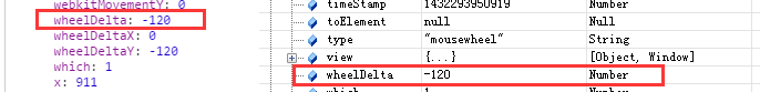 在除了FireFox之外的浏覽器下,滾動的上下滾動與否是下面這個wheelDelta有關。