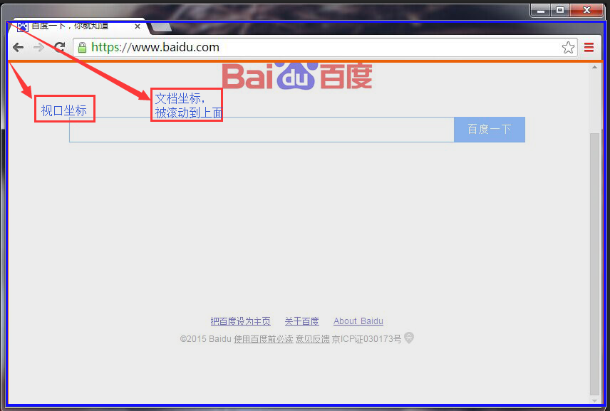 在定級窗口和標簽頁中,”視口“只是實際顯示文檔內容的浏覽器的一部分:它不包括浏覽器的“外殼”(如菜單、工具條和標簽頁)。
