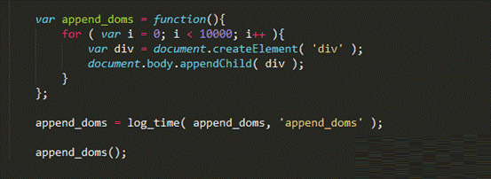 本身跟邏輯沒有任何關聯的統計代碼要被硬插進函數裡, 這點相信很多搞過上報的同學都很不爽. 比如下面這段代碼, 用來統計一個創建1000個節點的函數在用戶的電腦上要花費多少時間.